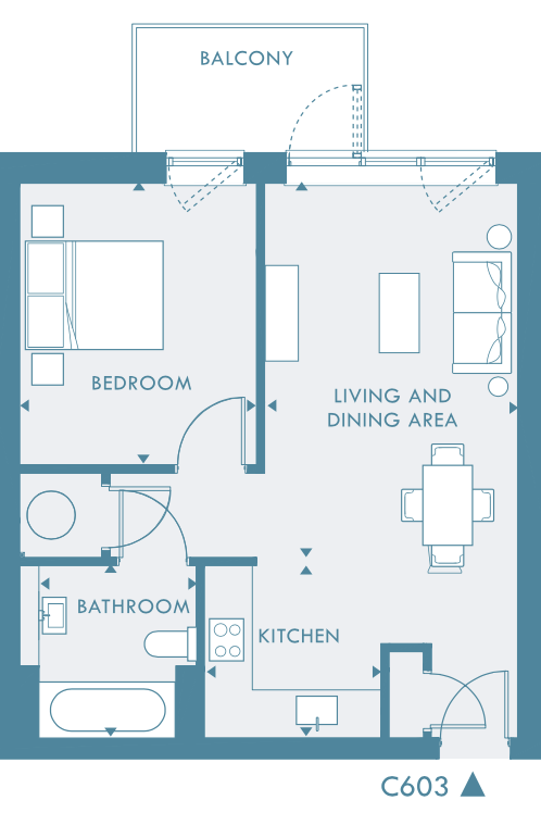 This sixth-floor apartment is located at our Westmount development, and measures approx. 460 sq. ft. The property has a central open plan living space, and a fully fitted contemporary kitchen and a lounge that opens onto a good size balcony.